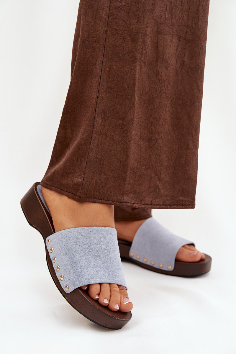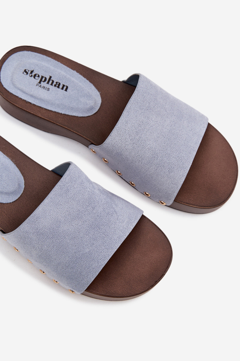 Sieviešu čības ar zelta krāsas dzīsliņām zilā krāsā Ferinna