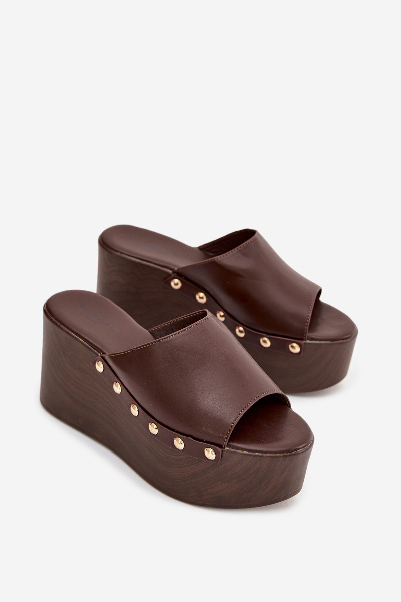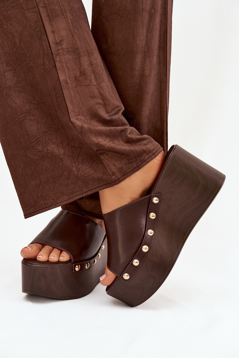 Sieviešu čības uz platformas ar kniedēm šokolādes krāsā Taireline