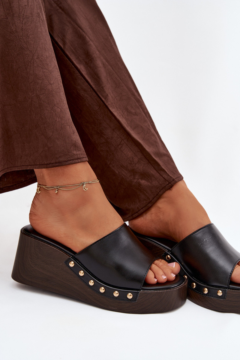 Sieviešu čības uz platformas ar zelta krāsas dzīsliņām melnā krāsā Arionne