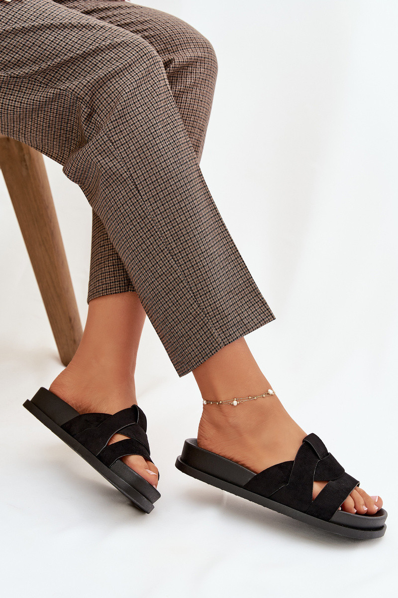 Sieviešu melnas čības no mākslīgās zamšas ar siksniņām Tai turirivessa