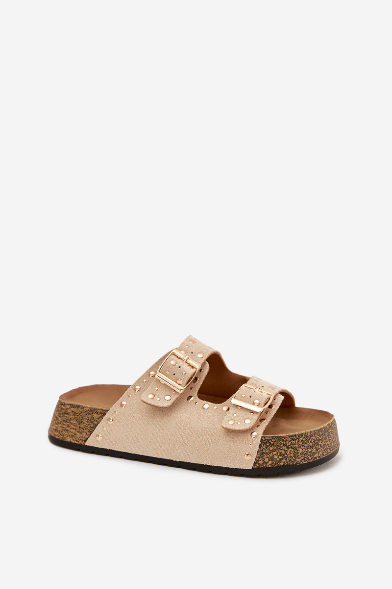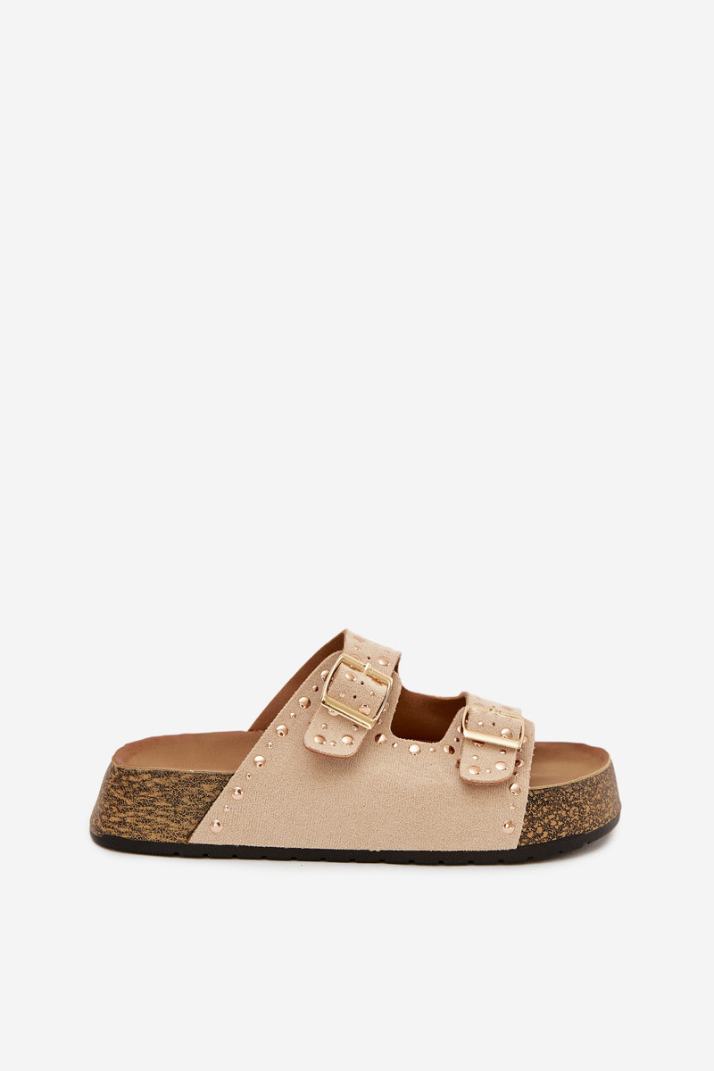 Sieviešu ziloņkaula krāsas čības ar zelta krāsas sprādzēm un naglām Tervina