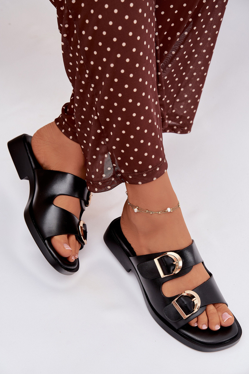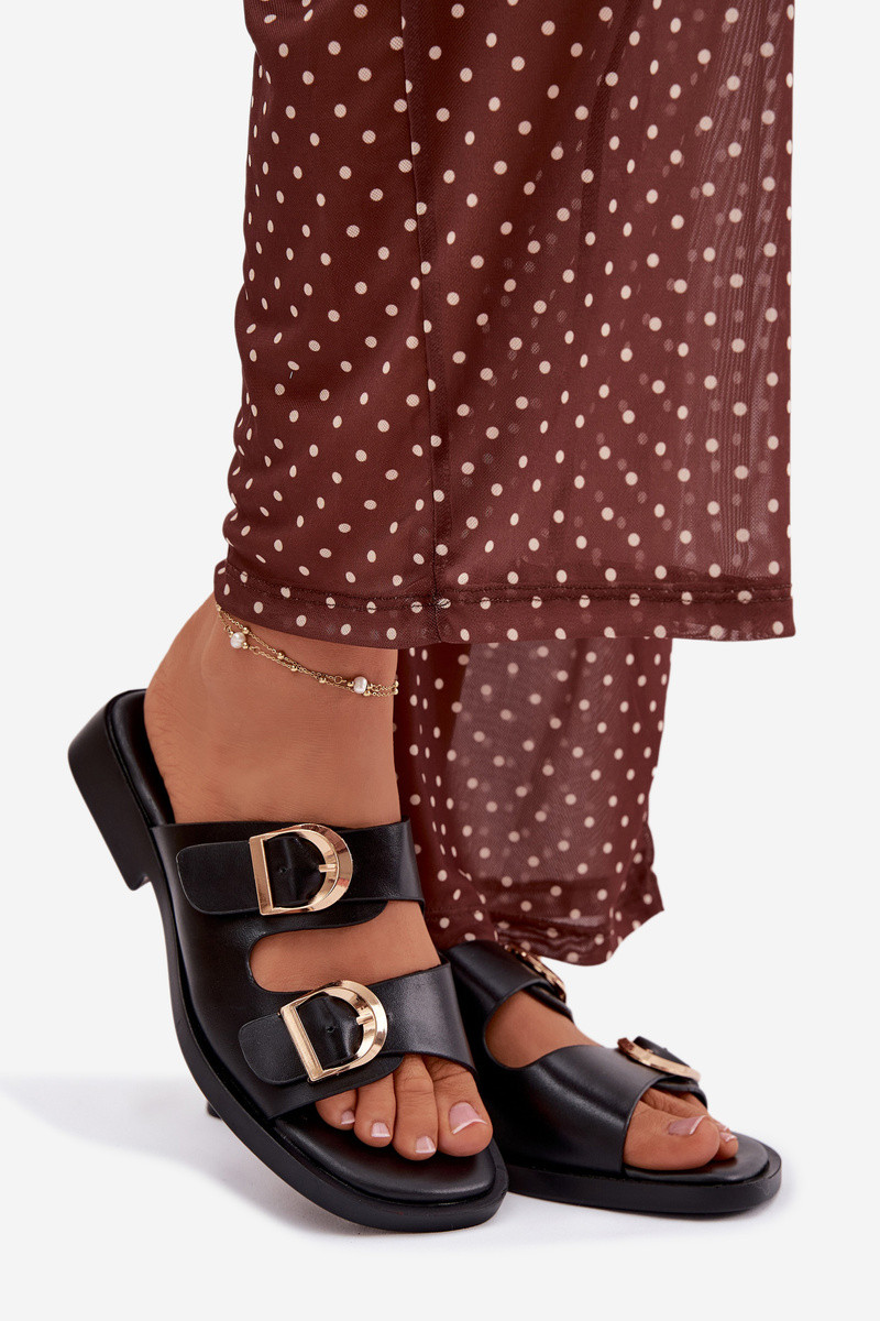 sieviešu čības Ze Zelta krāsasmi ar sprādzēmmi melnas krāsas Danelle
