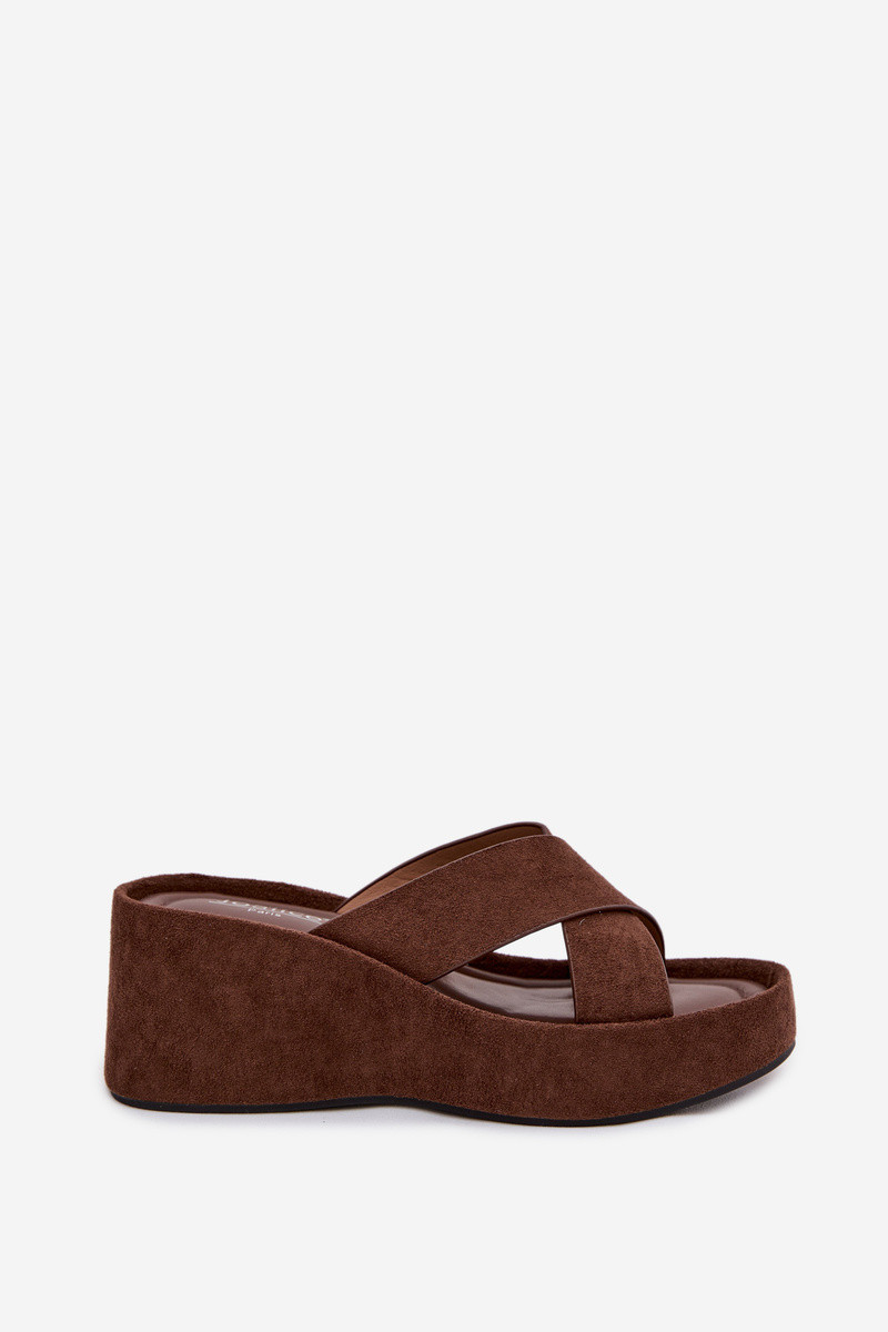 Šokolādes krāsas sieviešu čības uz platformas no mākslīgā zamša „Calorine"