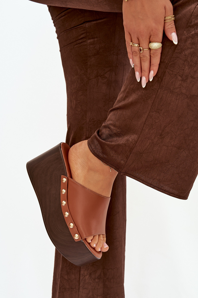 Tai turireline brūnas krāsas sieviešu čības uz platformas ar kniedēm