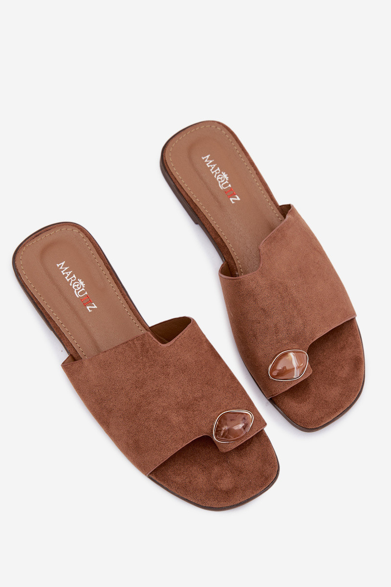 Sieviešu zemas čības ar greznām detaļām no mākslīgā zamša, brūnā krāsā, Selavine