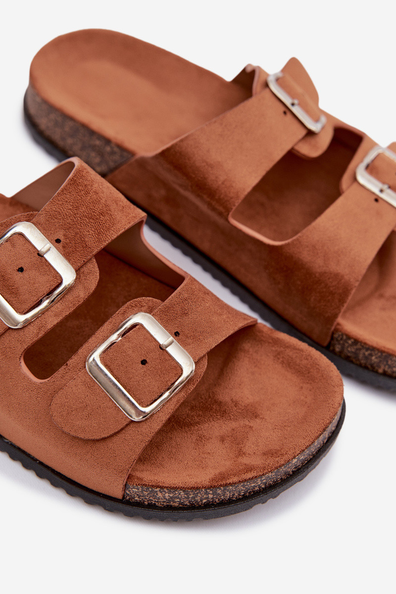 Sieviešu brūnas krāsas čības ar sprādzēm Oliena