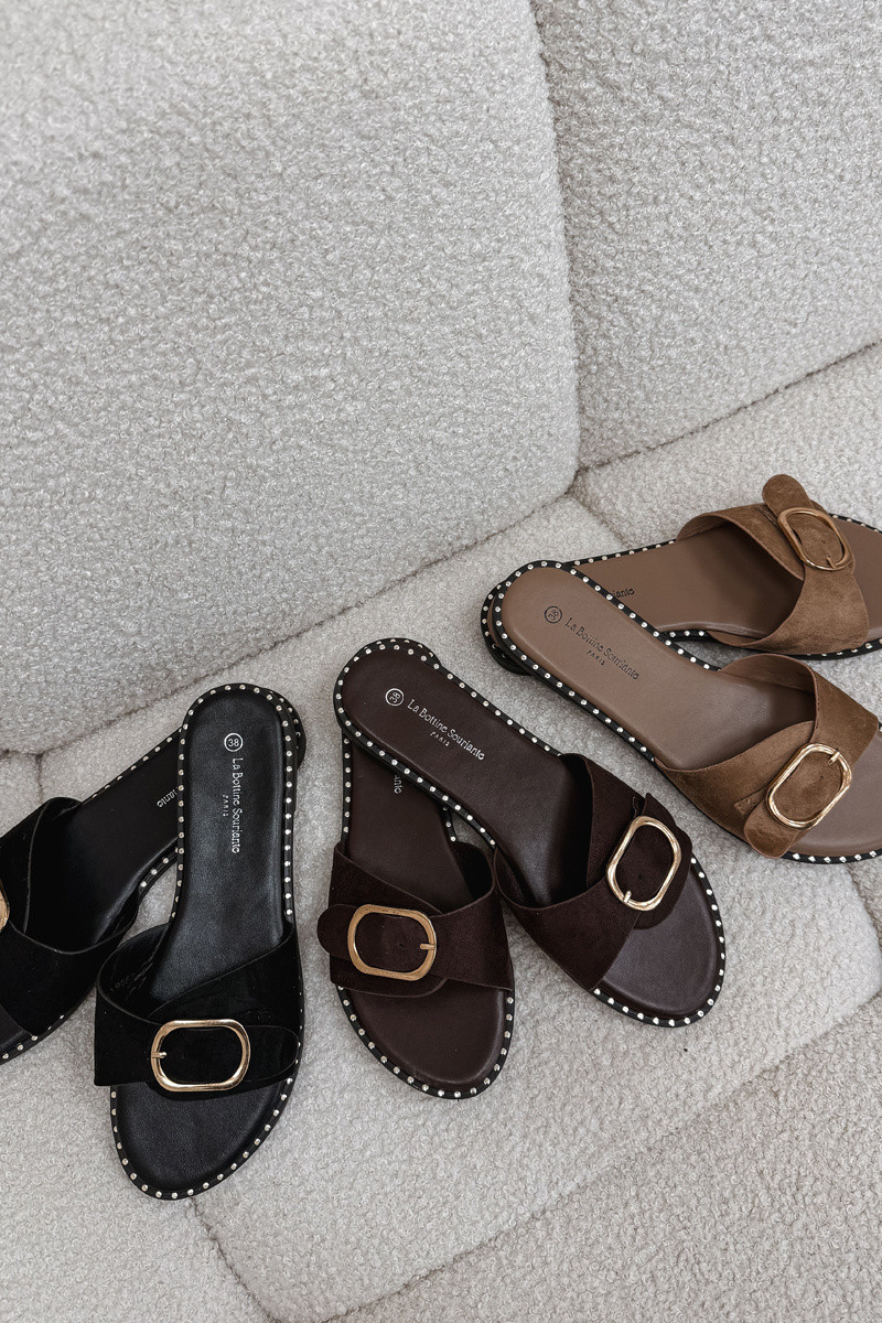 sieviešu čības ar platiem papēžiem Ar zelta sprādzi melnas krāsas Selivelle