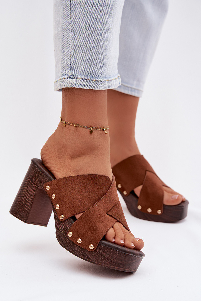 sieviešu čības ar papēdi Ze Zelta krāsasmi Kniedes brūnas krāsas Nerelle