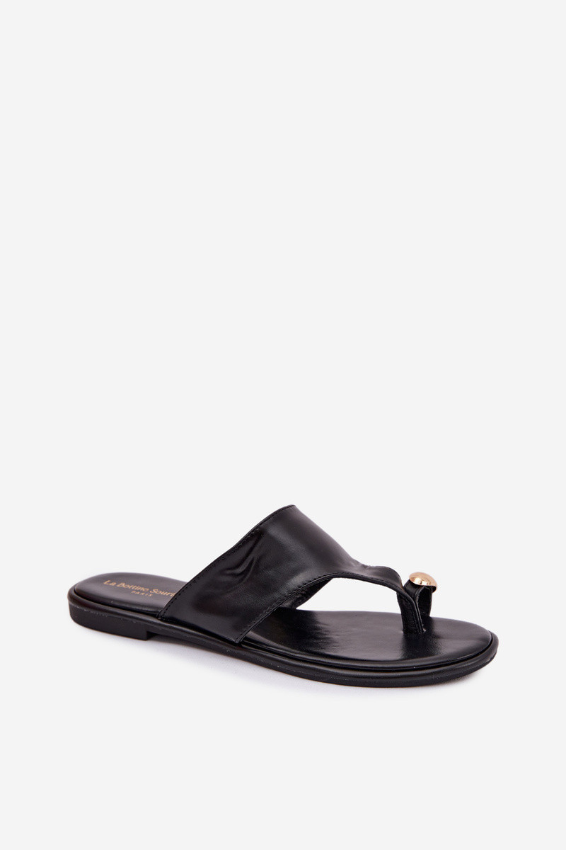 Sieviešu plakanās čības no mākslīgās ādas ar zelta krāsas detaļām melnā krāsā Lavessa