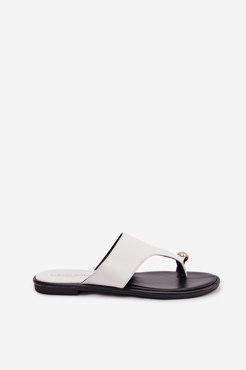 Sieviešu plakanās čības no mākslīgās ādas ar zelta krāsas detaļām baltā krāsā Lavessa