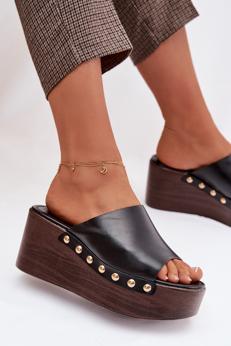 Sieviešu čības uz platformas ar zelta platformas naglām melnas krāsas Farinelle