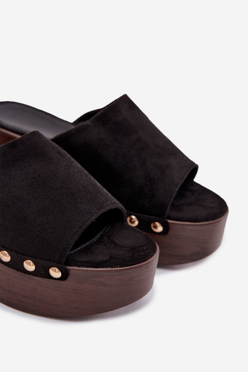 Sieviešu čības uz platformas ar zelta naglām no mākslīgā zamša melnas krāsas Helivina