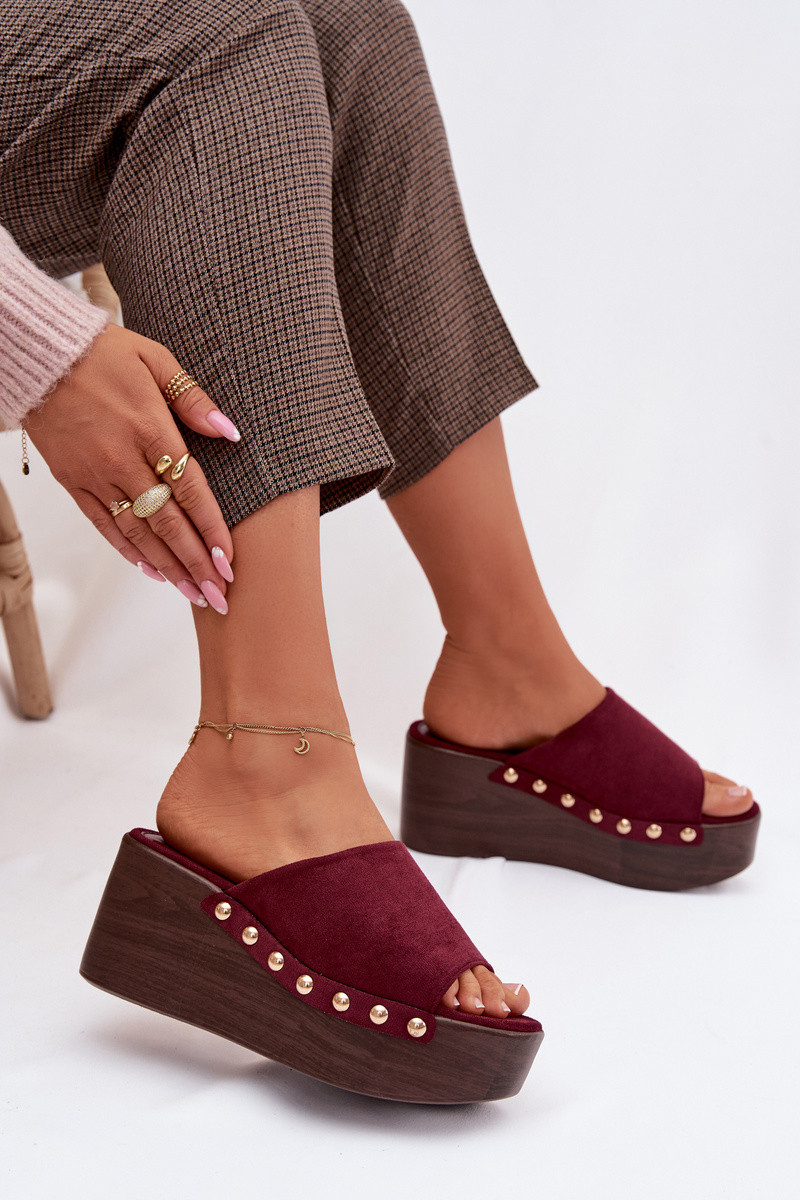sieviešu čības Uz Ķīļa Ze Zelta krāsasmi Kniedes Eko zamšādaoIne bordo krāsas Helivina