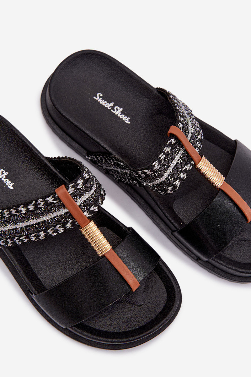 sieviešu čības ar platformu Ar svītrām I Zelta krāsasm Detalem melnas krāsas Tahlia