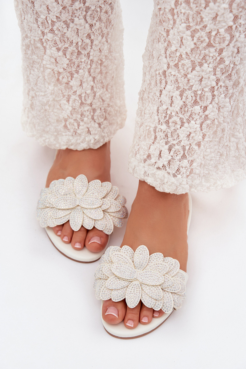 Baltas krāsas sieviešu čības ar dekorāciju Grelora