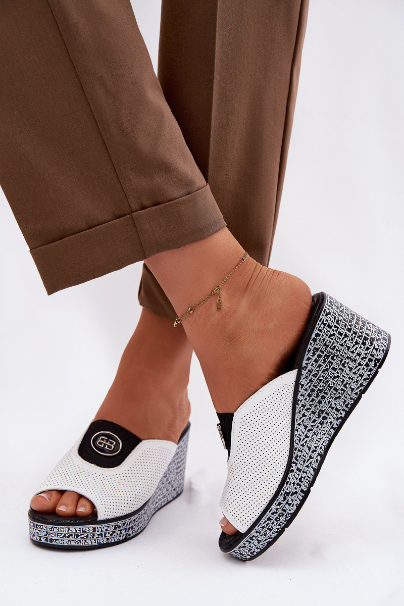 Ādas čības ar platformu ar ornamentiem S.Barski LR61-7011 baltas krāsā