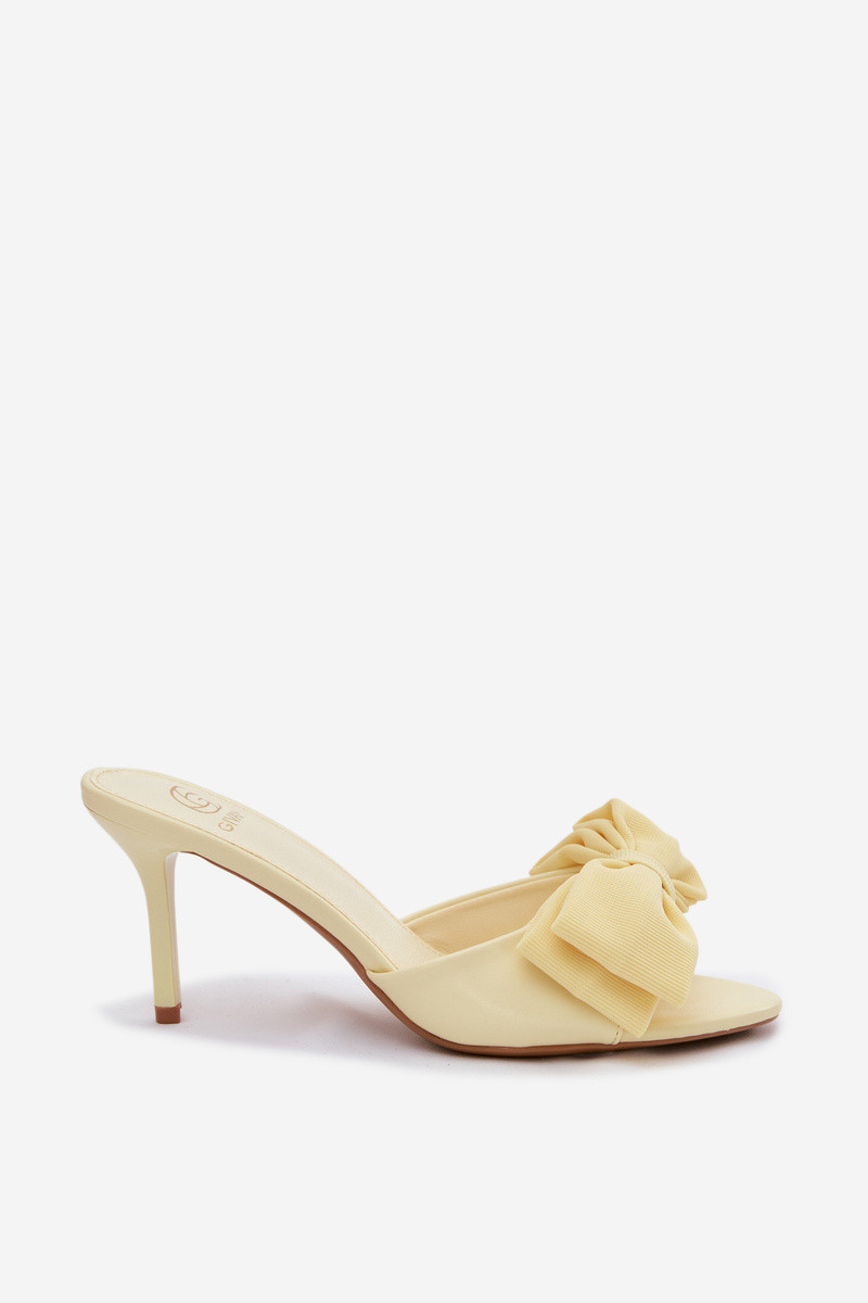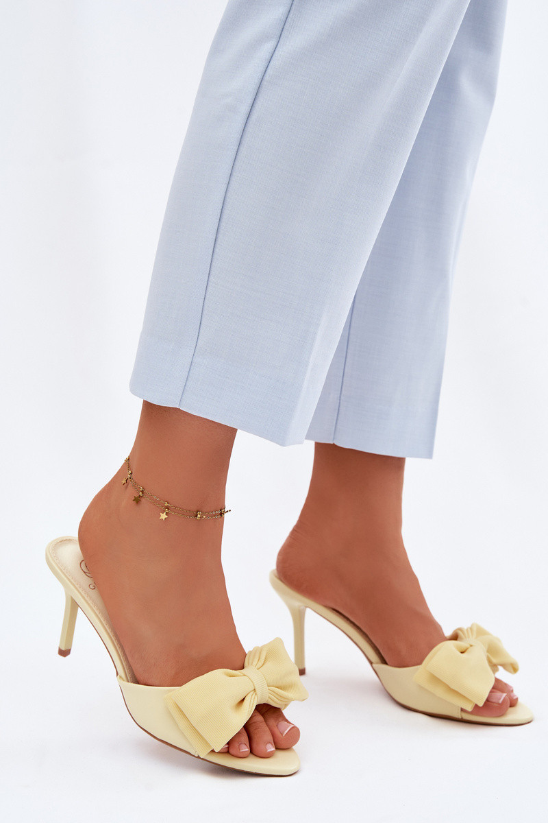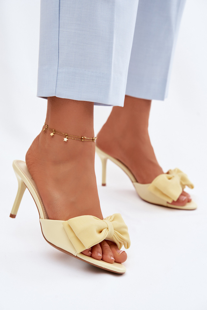 Sieviešu čības ar plāniem papēžiem un lentēm dzeltenā krāsā Jelessa