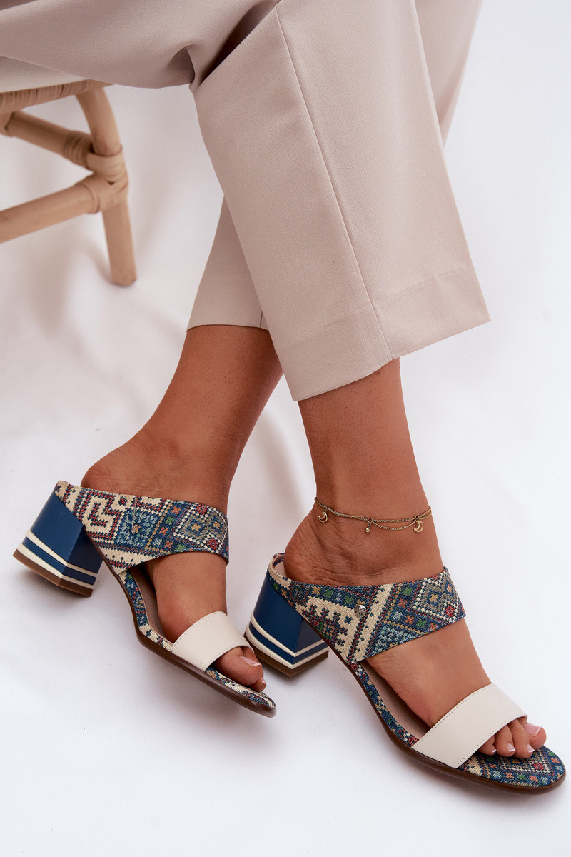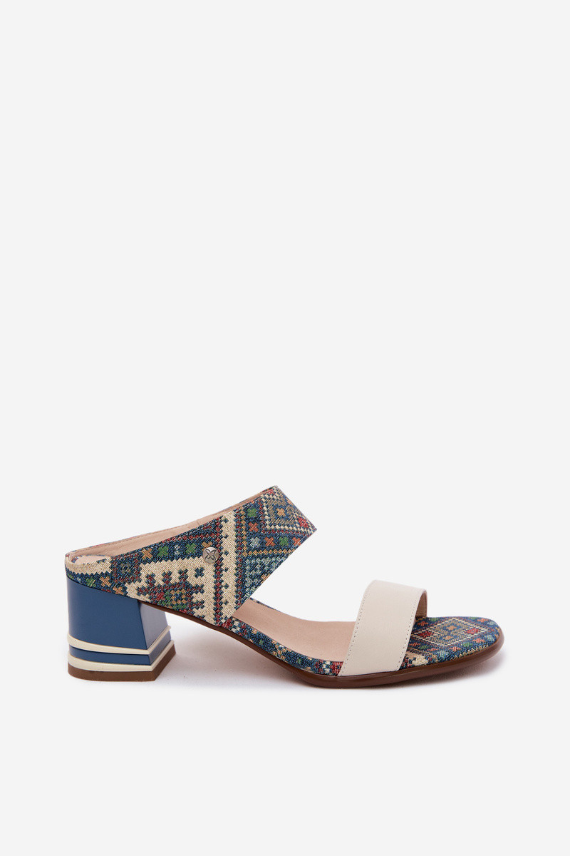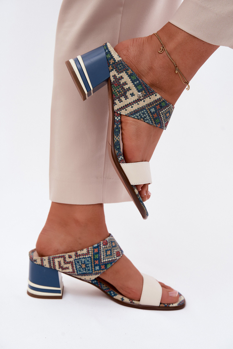 Āda Rakstaina sieviešu čības ar papēdi Tā irciejka K7522-04 smilšu krāsas-Zilas krāsas