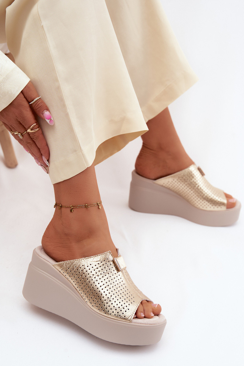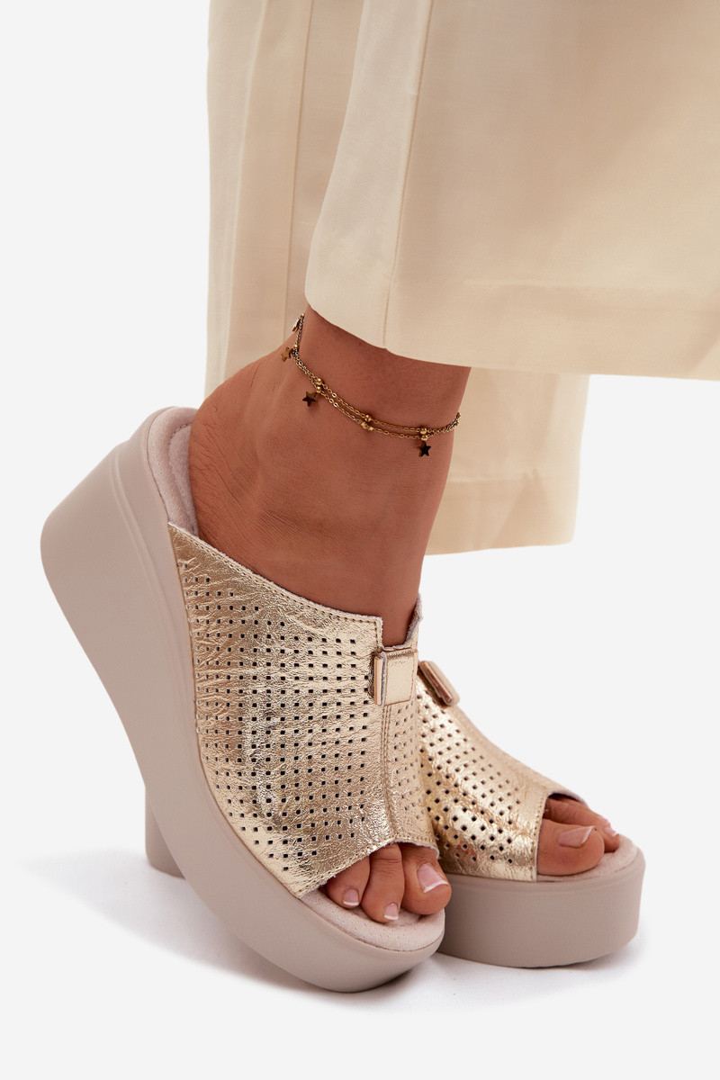 sieviešu čībasIeslēgtsturalnej Skóry ar platformu Vinceza 95392 Zelta krāsas