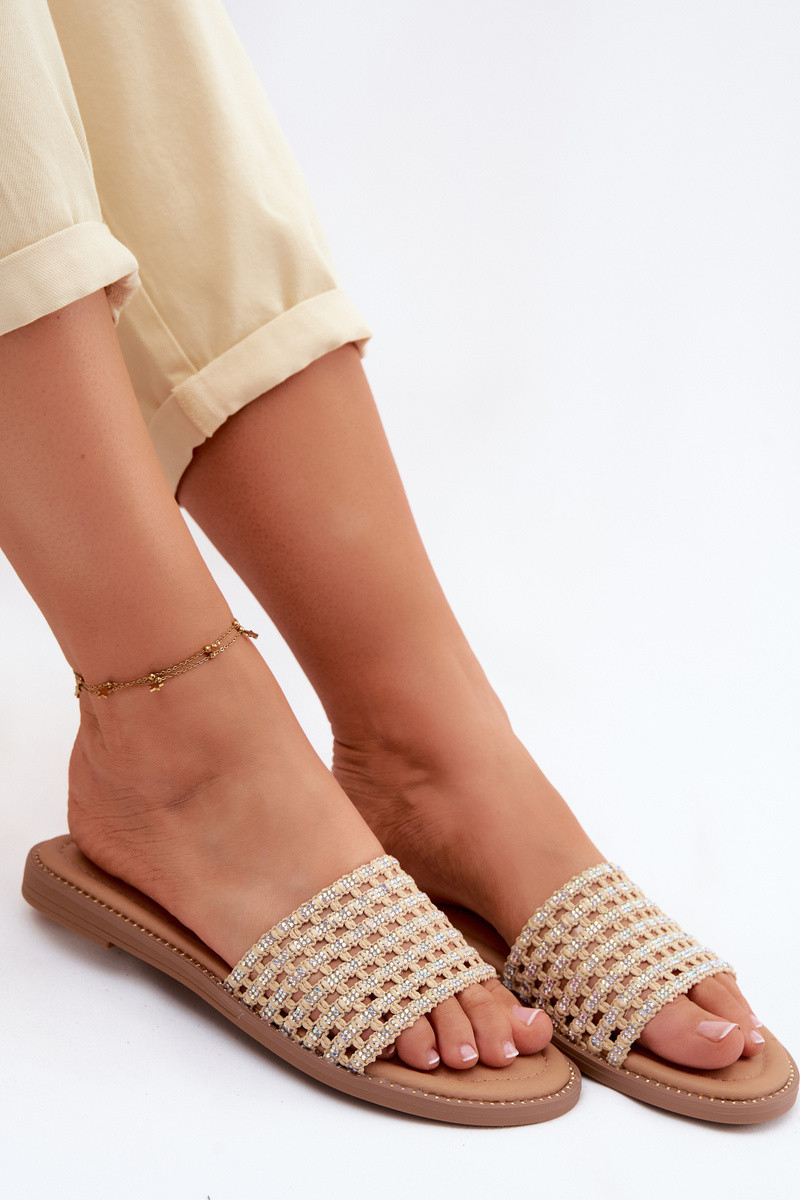 Čības Sieviešu dzīvoklis ar mirdzošiem spīdumiņiem brūnas krāsas Fendi