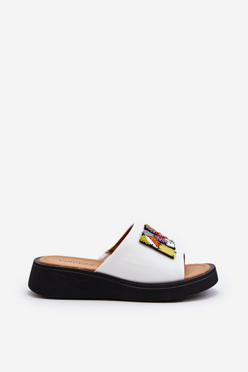 VINCEZASieviešu ādas čības ar ornamentiem baltas Asames