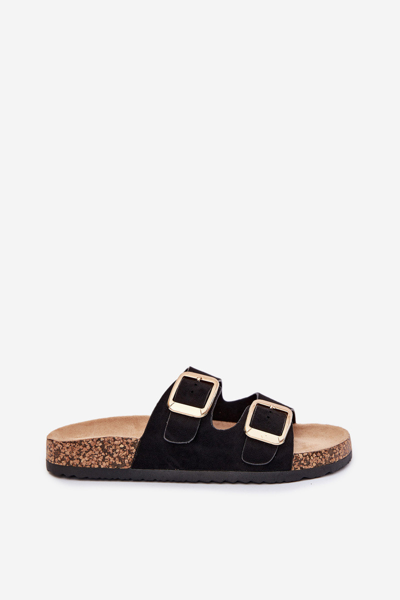 Sieviešu smilšu krāsas mākslīgās zamšādas čības ar zelta sprādzēm Vorella