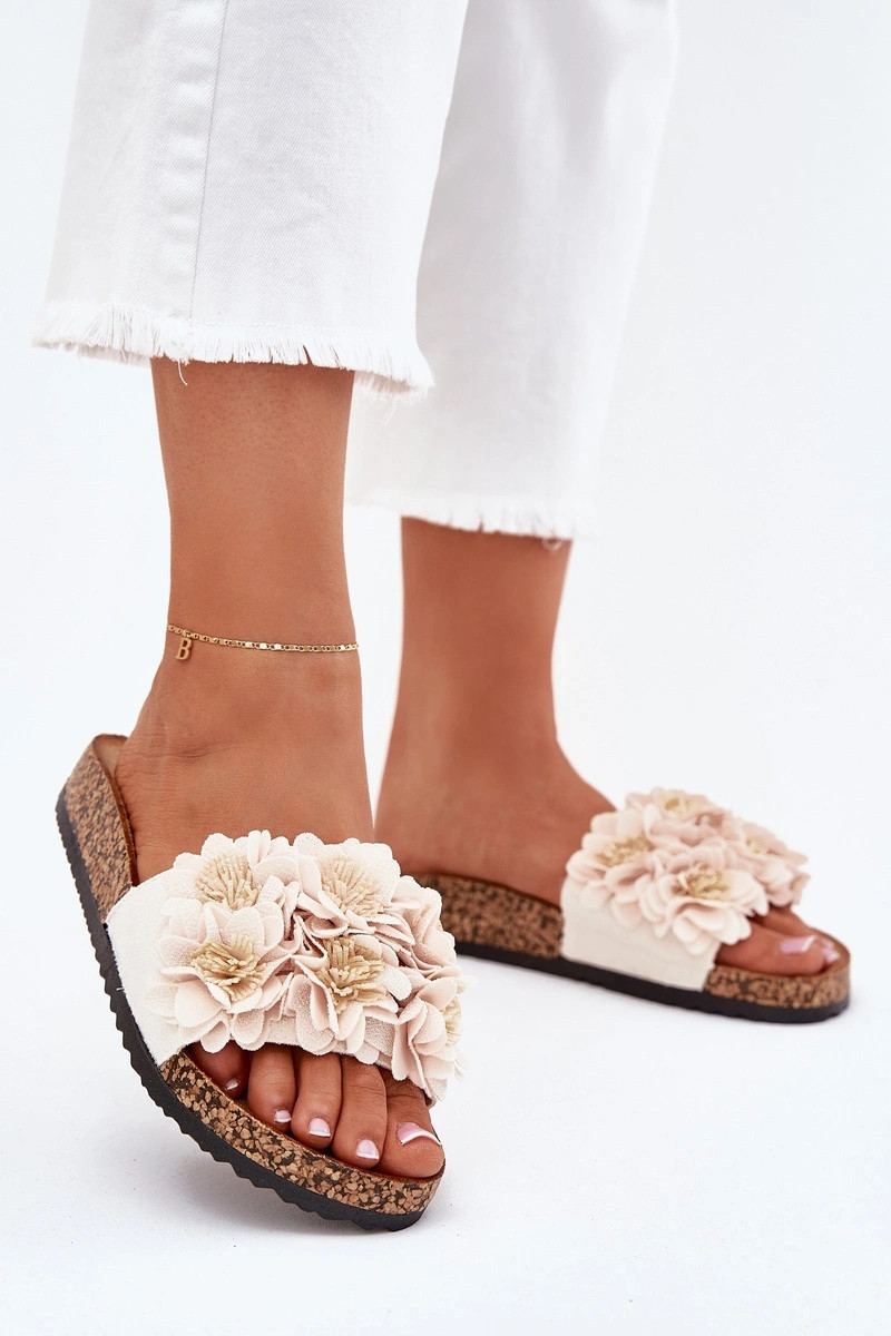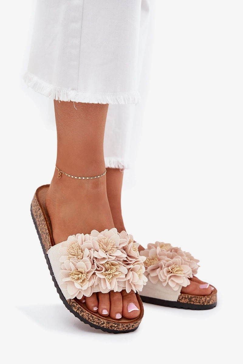 sieviešu čības Uz korķa zoles Ar greznui Ziedskami smilšu krāsas Seleneza