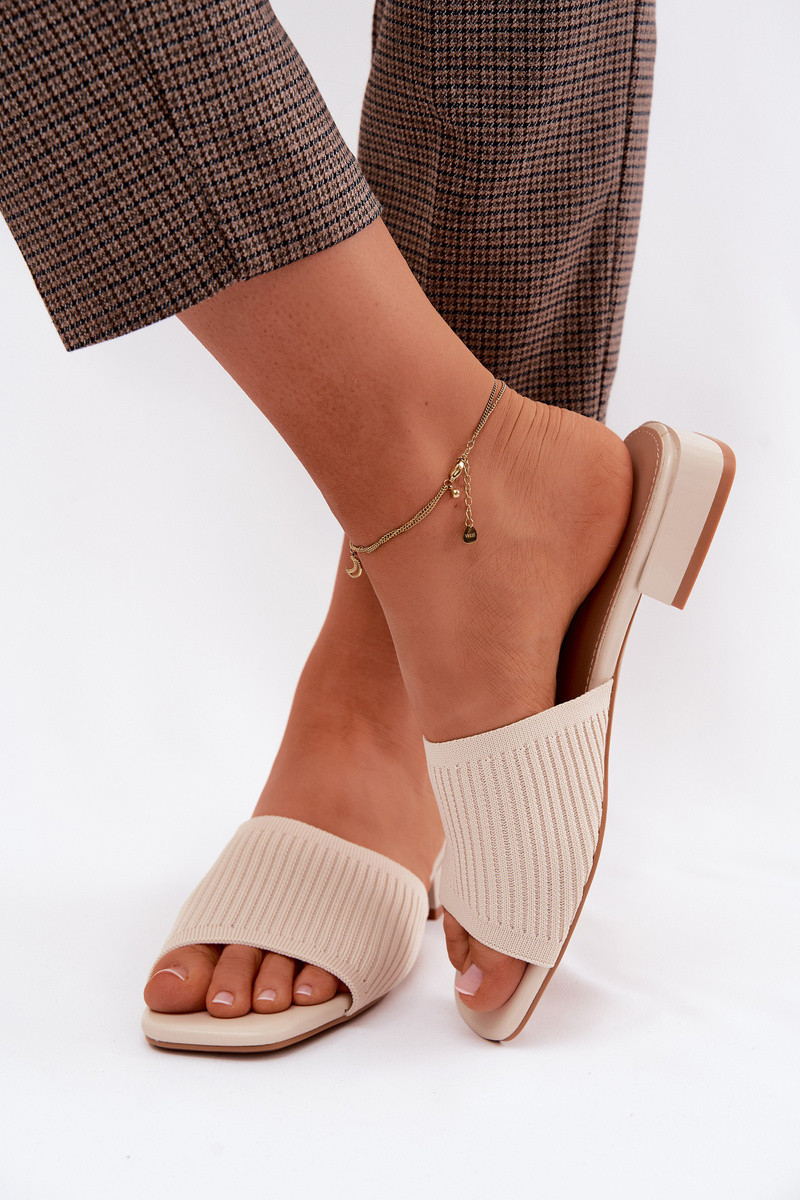 Auduma sieviešu čības ar platiem papēžiem smilšu krāsas Belissea