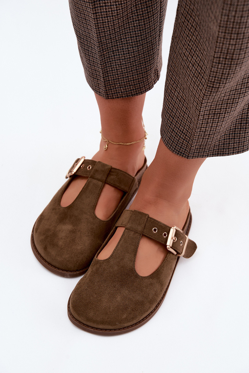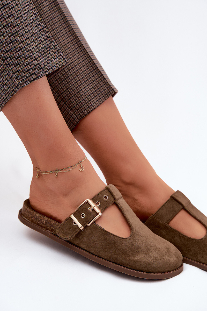 sieviešu čības MuleImitacji zamšādasu haki krāsas Melvia