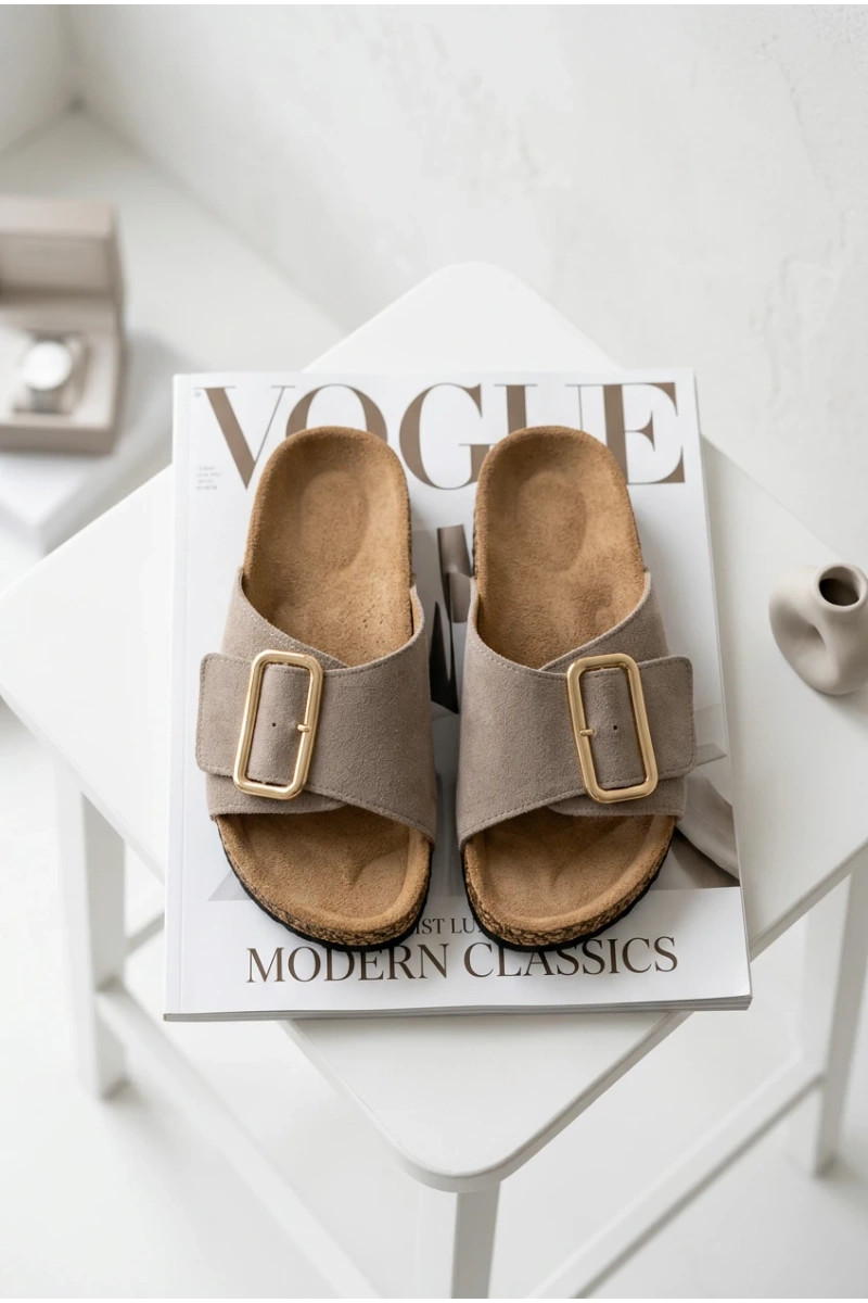 Āda sieviešu zamšādas čības ar sprādzēm smilšu krāsas Beryl