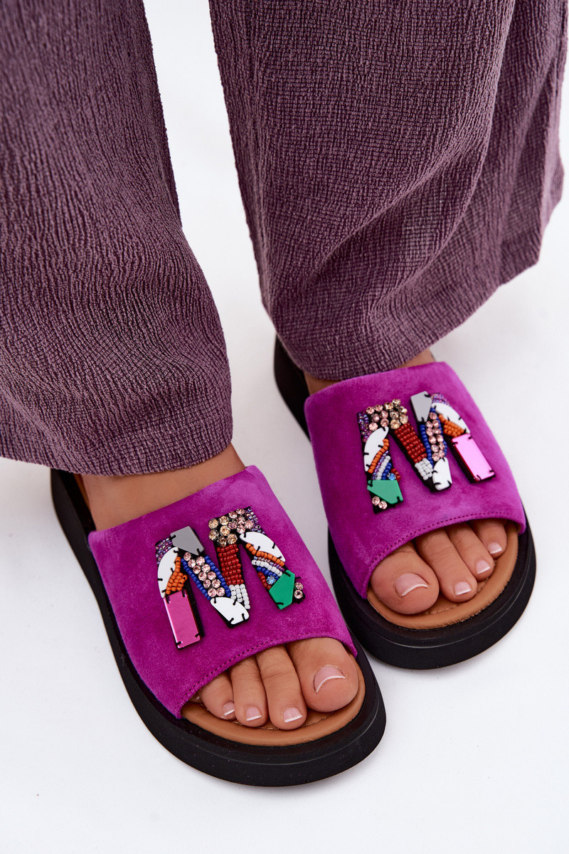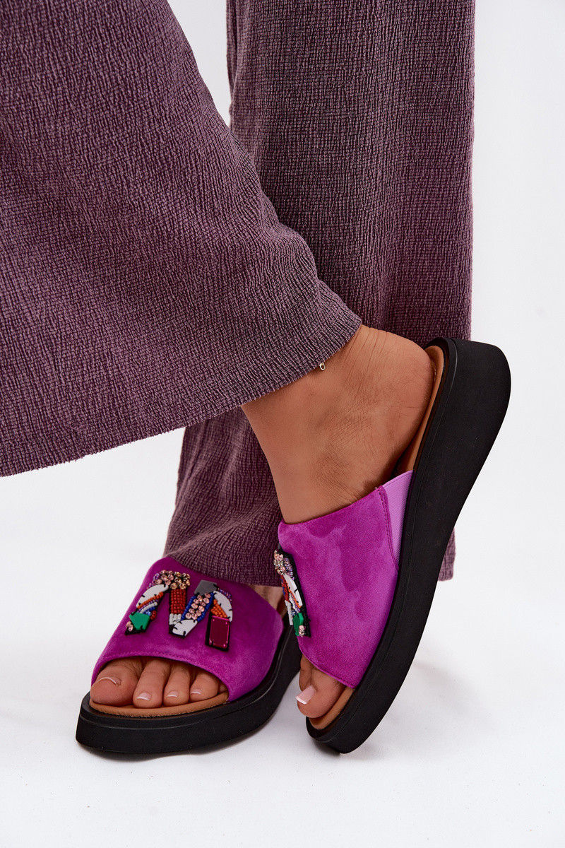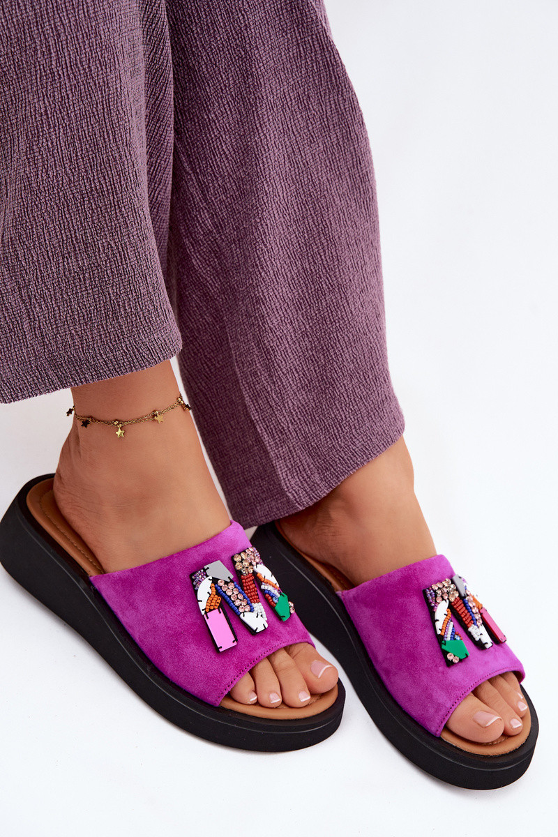 VINCEZAĀda sieviešu zamšādas čības ar ornamentiem ar platformu Vinceza 66942 rozā krāsas