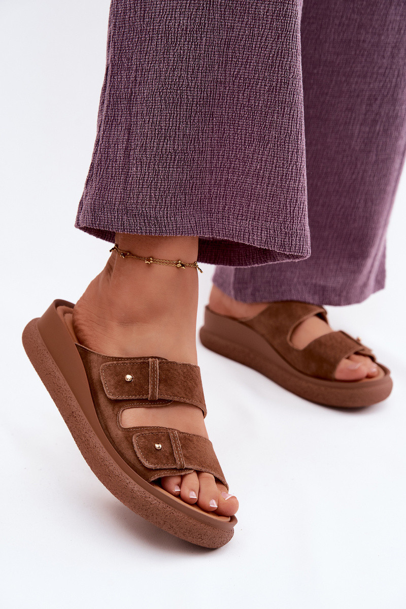Brūnas mākslīgās zamšādas sieviešu čības uz platformas Vinceza 66916