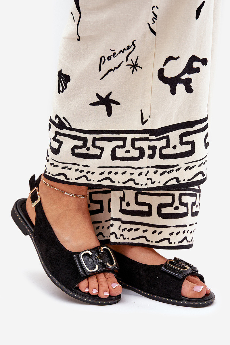 Plakano zoli sandales ar ornamentiem no mākslīgās zamšs melnā krāsā