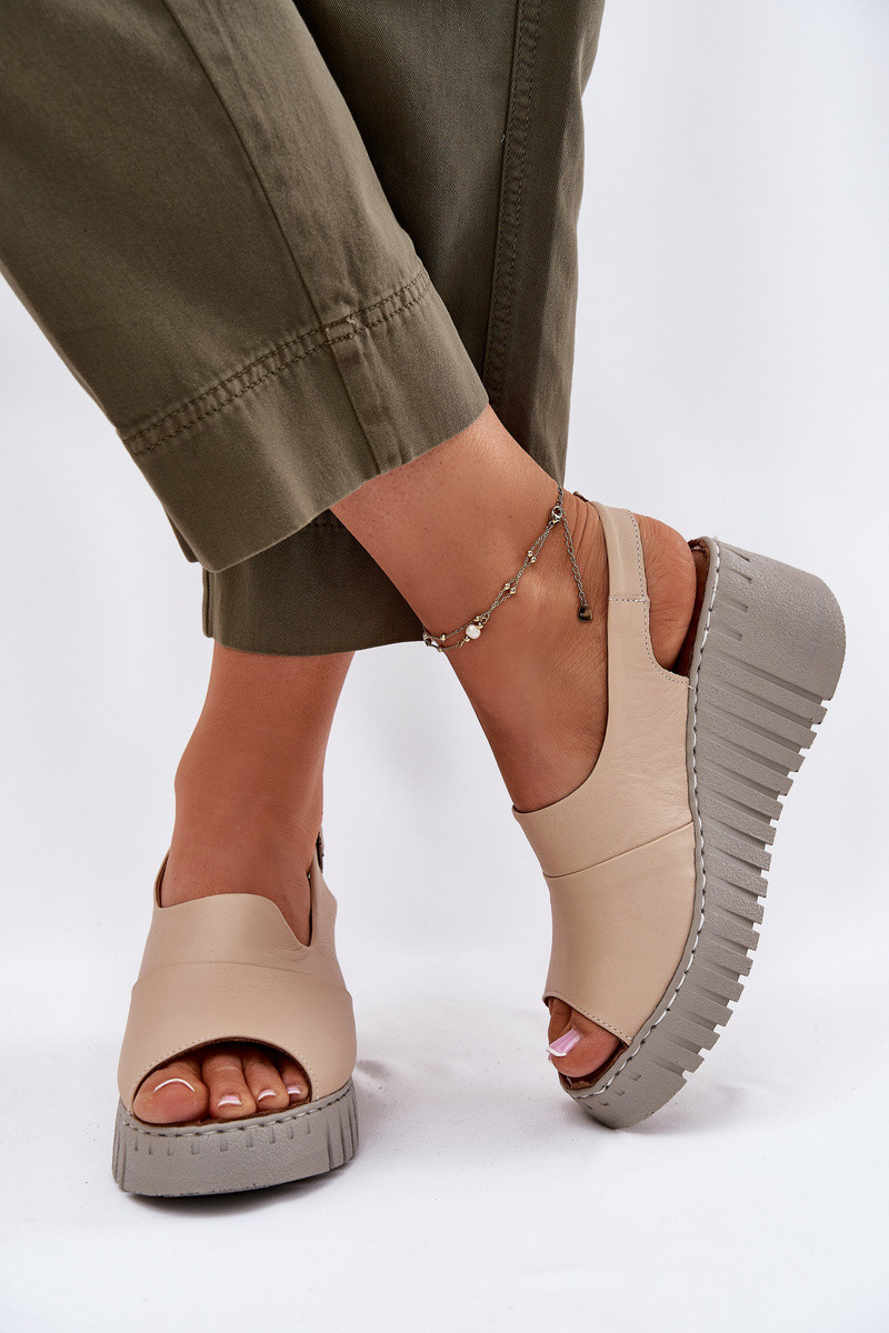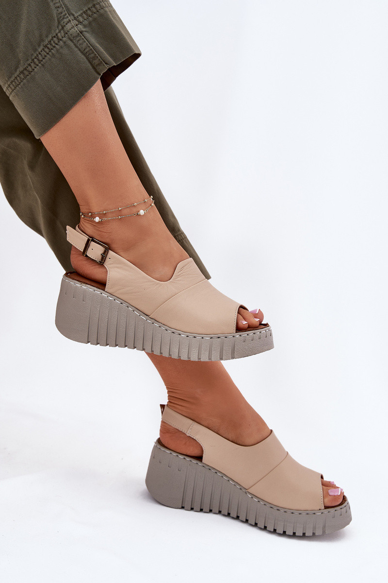 Sieviešu basenesIeslēgtsturalnej Skóry Uz Ķīļa Artiker 56C0957 smilšu krāsas