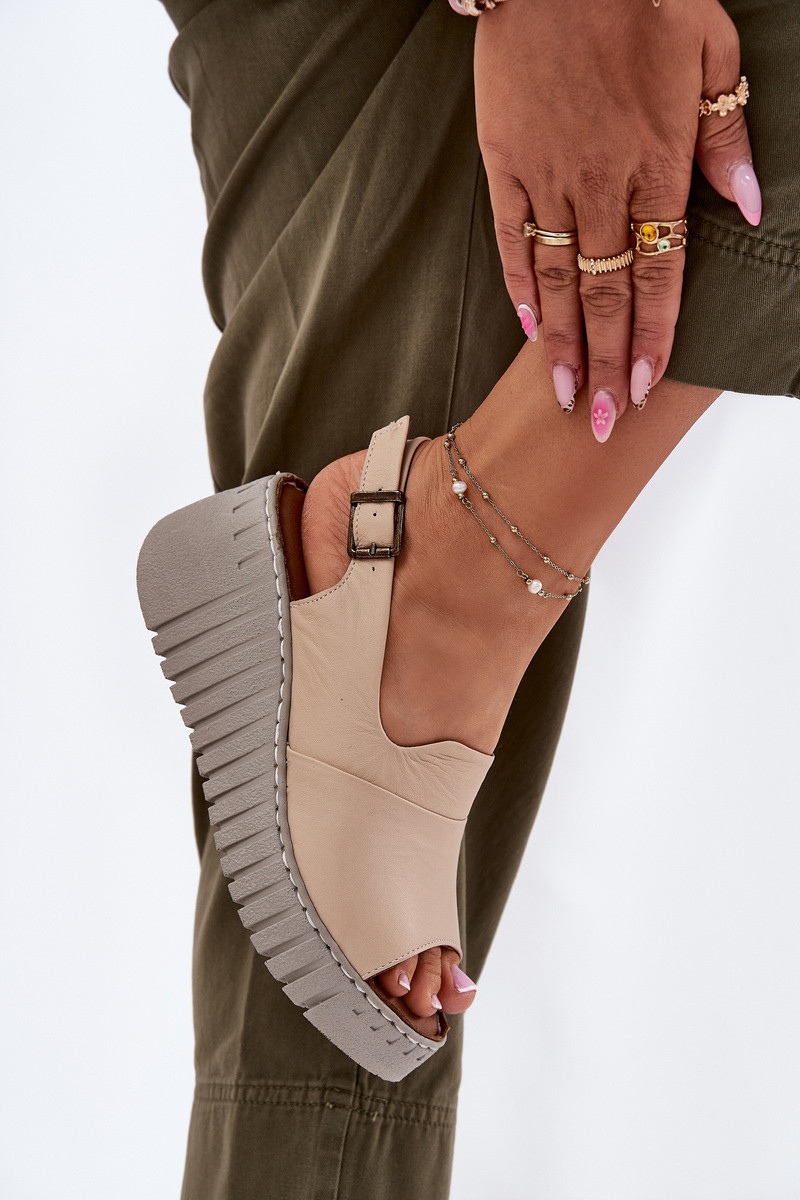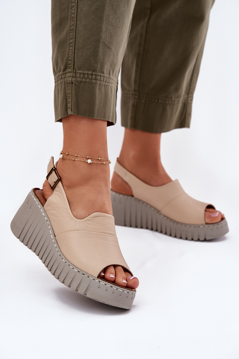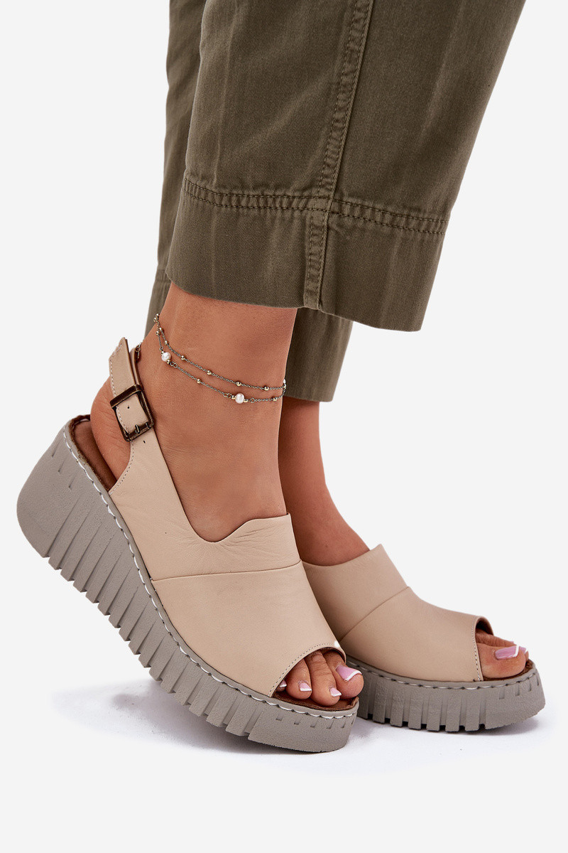 Smilšu krāsas sieviešu sandales no dabīgās ādas uz platformas, Artiker 56C0957