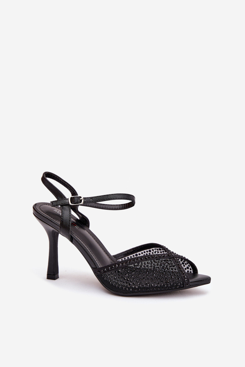 Melnas sieviešu sandales ar plāniem papēžiem un dekoru Peloria