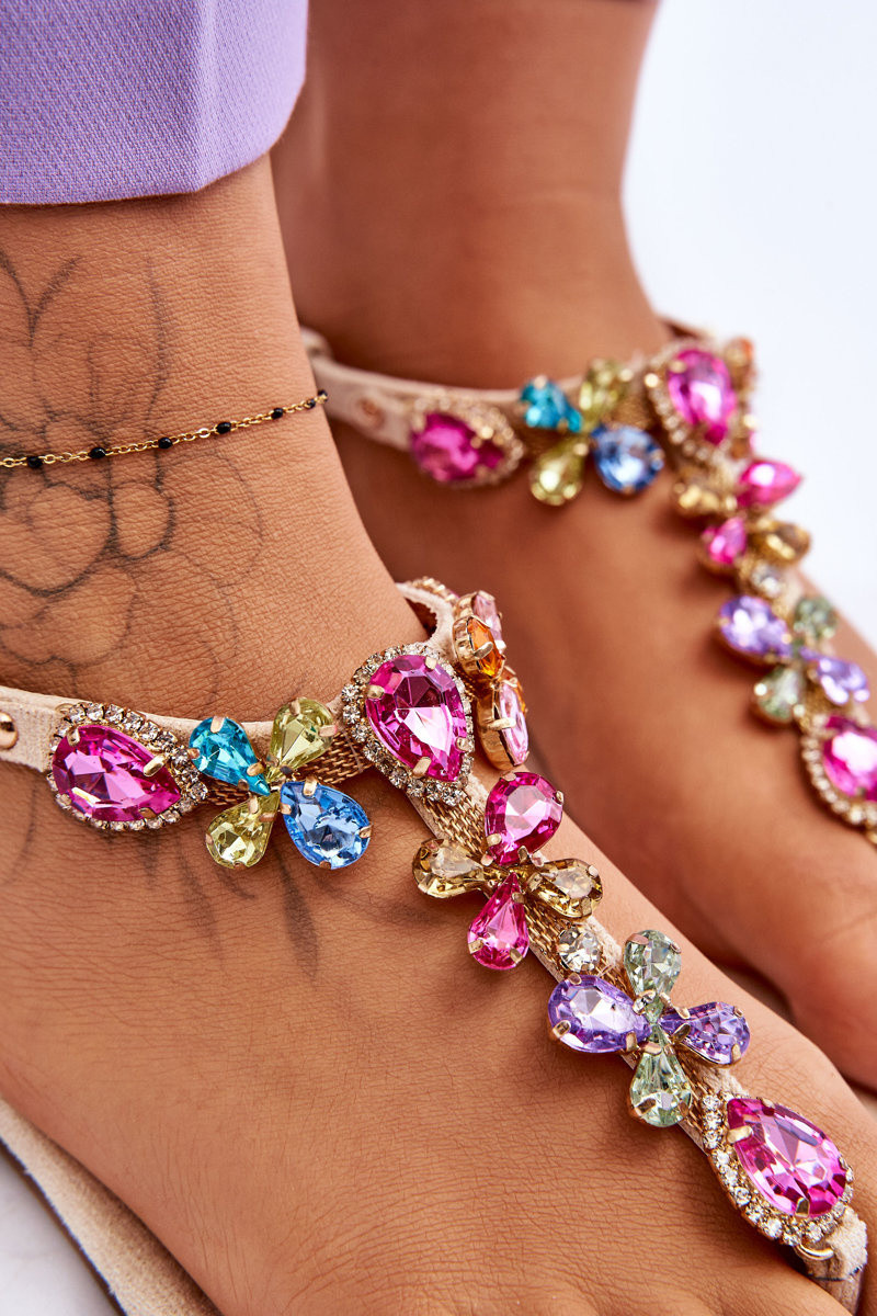 Sūklīgo sandales-čības ar akmentiņu dekorāciju smilšu krāsā Frency