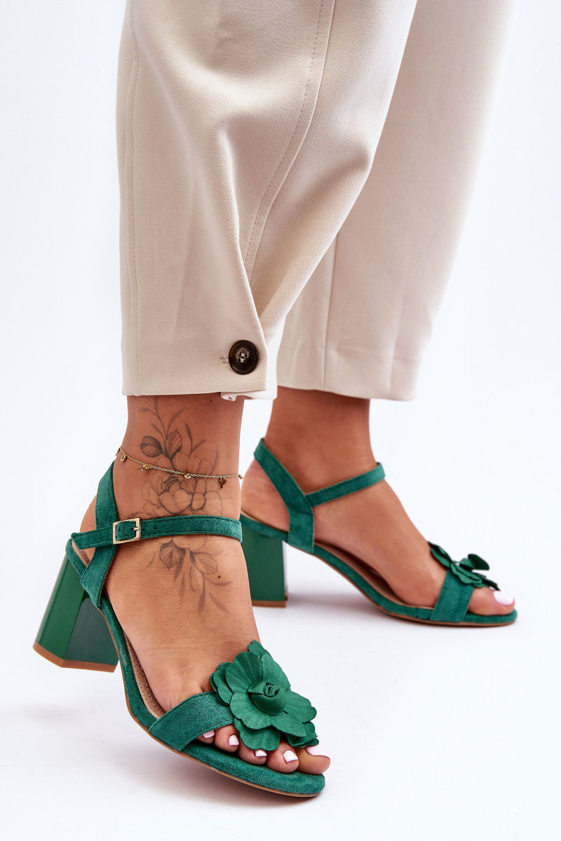 Sūklīgo sandales ar ziedu S.Barski 04 zaļā krāsā