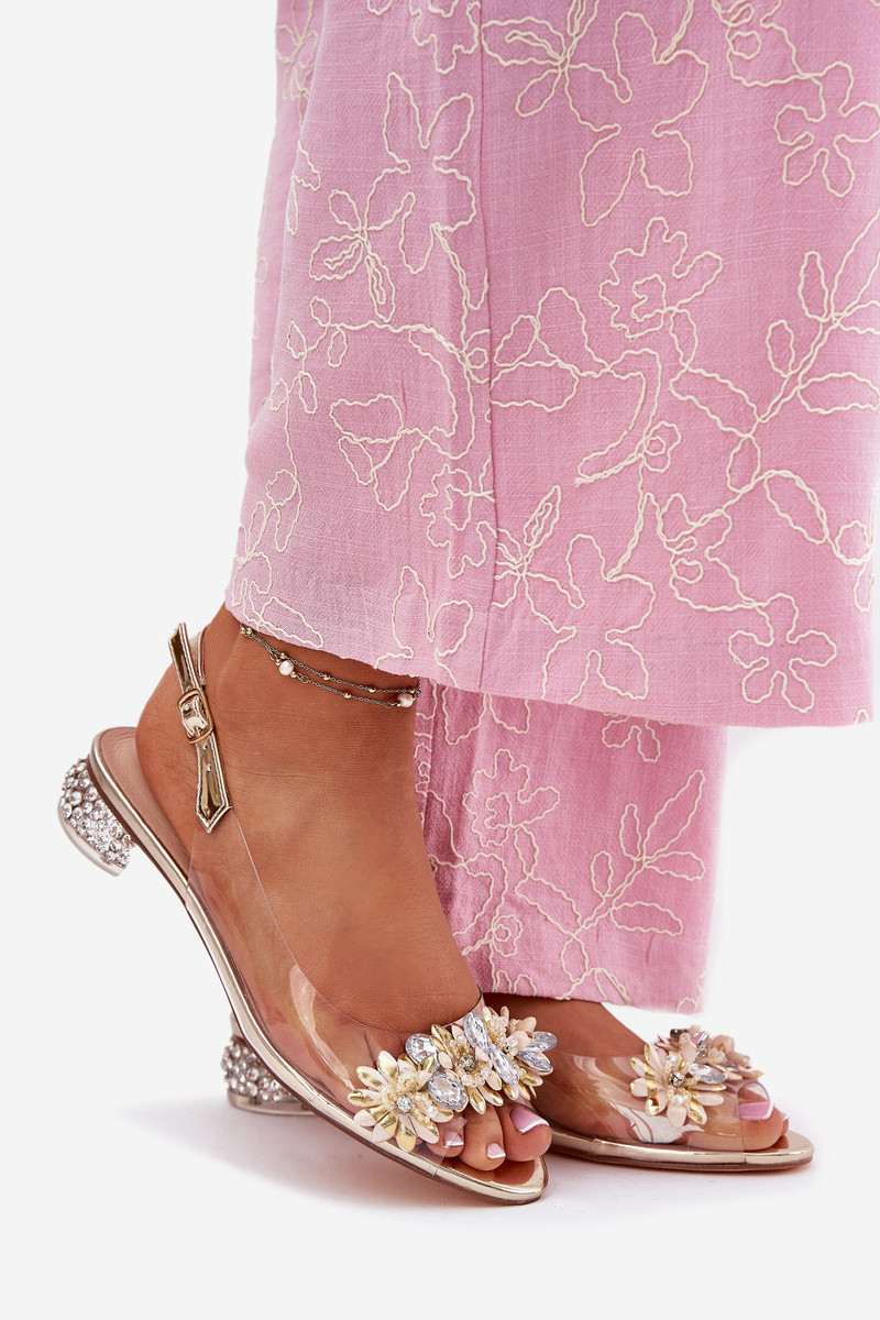 Caurspīdīgas sandales Uz Zema Papēža Ar Dekorāciju D&A MR51-709 Zelta krāsas