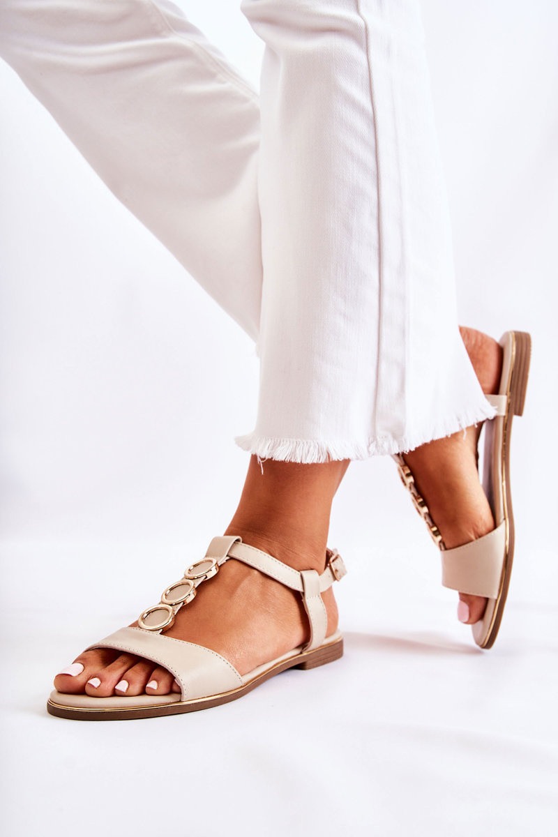 Sieviešu klasiskā stila sandales ar dekorētiem papēžiem smilšu krāsā Terina