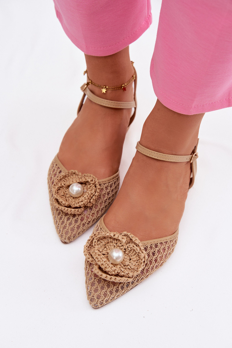 Sieviešu sandaļi ar papēžiem un greznām detaļām, smilšu krāsas Vionessa