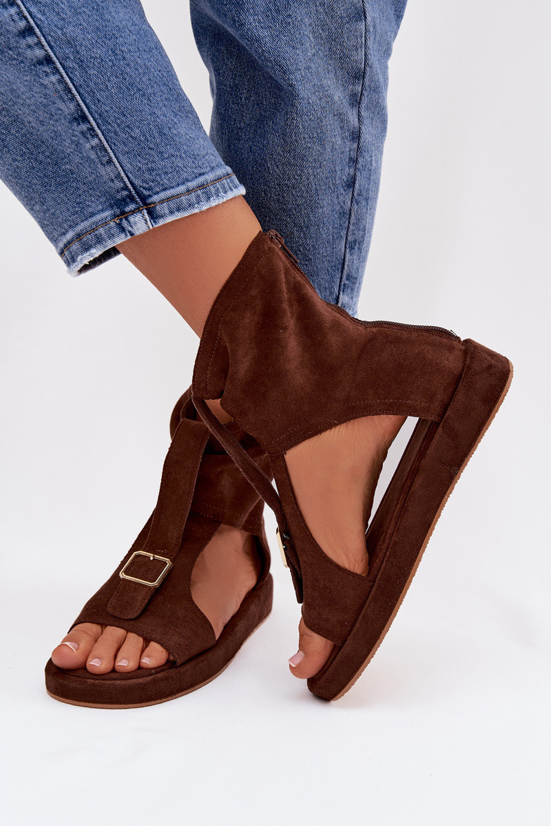 Sieviešu šokolādes krāsas sandales ar zābaku Coralya