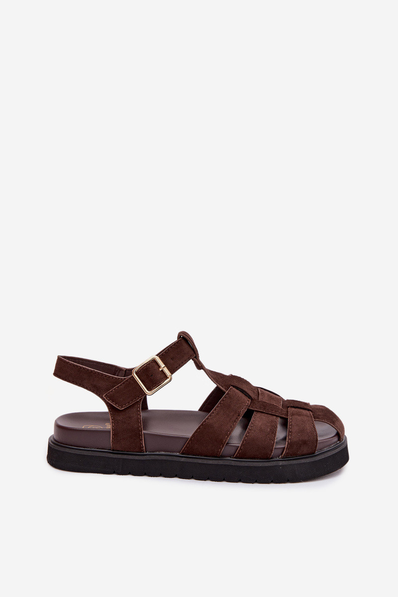 Sieviešu romiešu sandales ar zelta sprādzēm un platformu šokolādes krāsā Terelina