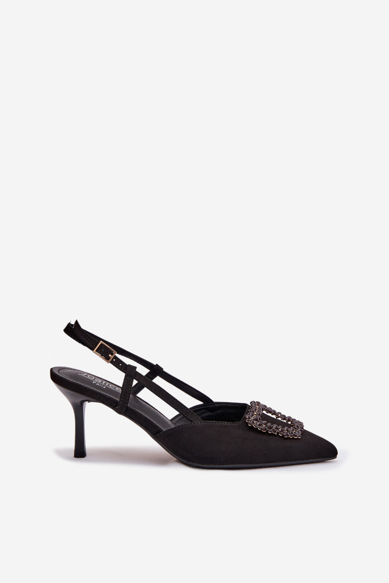 Sieviešu basenes ar papēdi ar ornamentiem melnas krāsas Ismeria