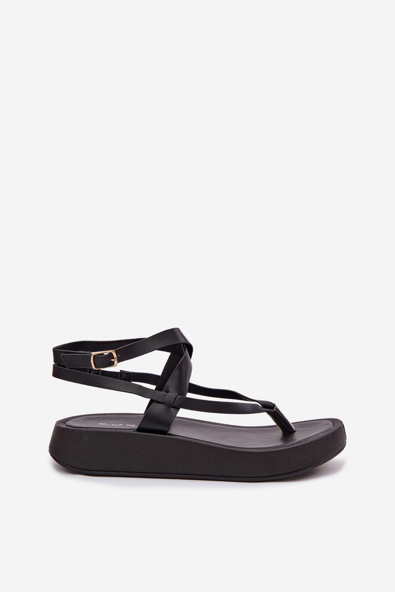 Sieviešu melnas sandales starp pirkstiem ar platformu Gelira