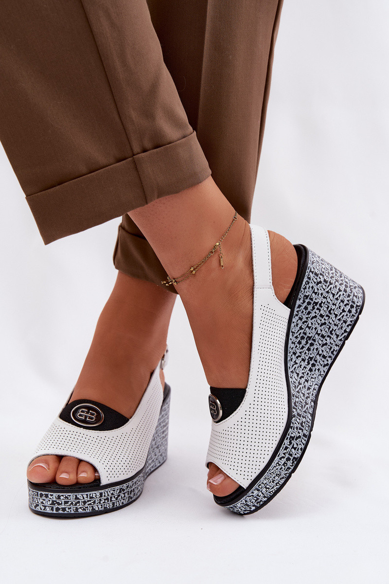 Ādas platformas sandales S.Barski LR61-7010 baltā krāsā