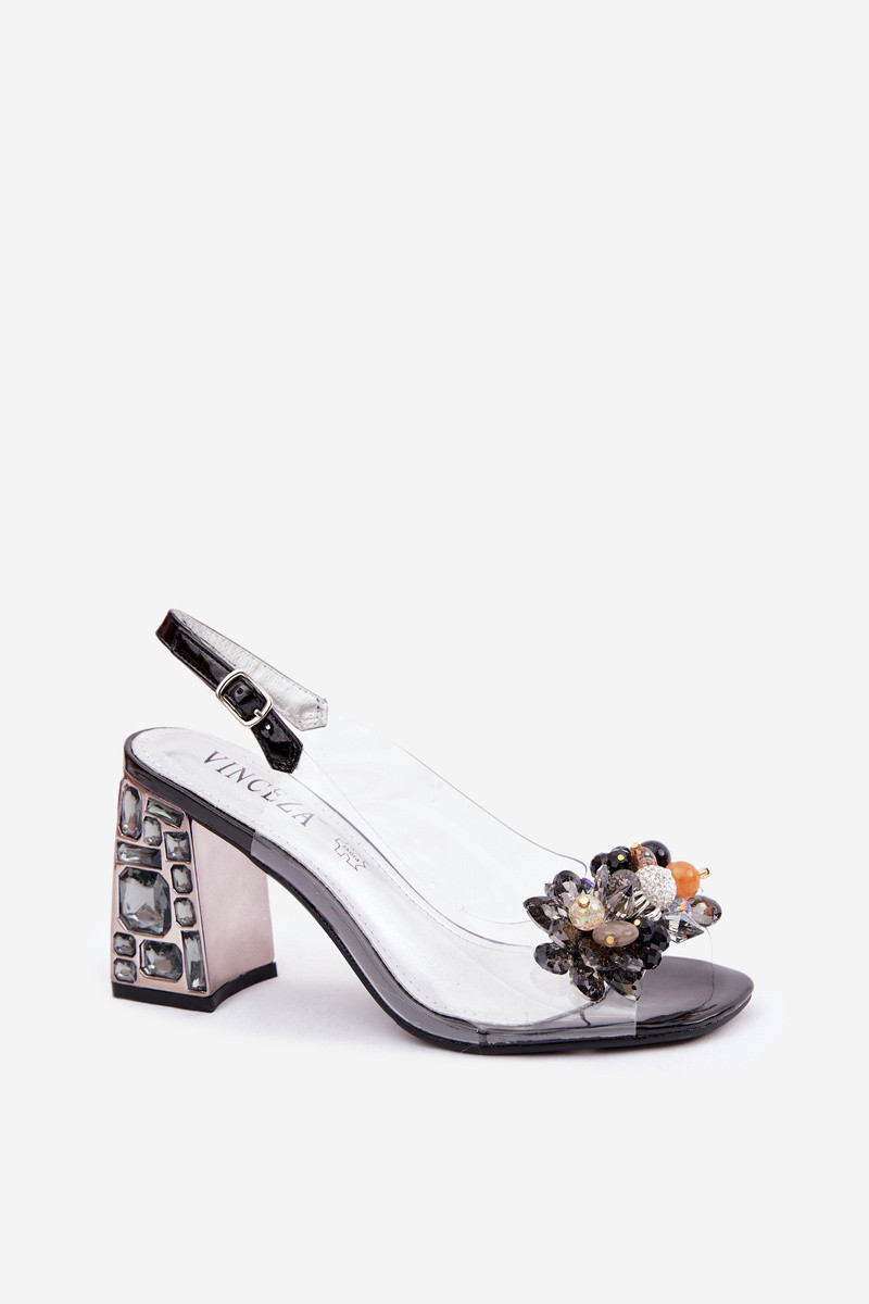 Caurspīdīgas sandales ar papēžiem un spīdīgām acīm Vinceza 70121 melnā krāsā