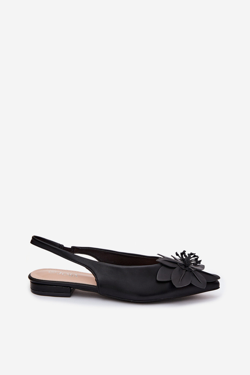Moteriskas melnās krāsas basām kurpēm ar platām papēžiem un dekoratīvām ziediem Telivette