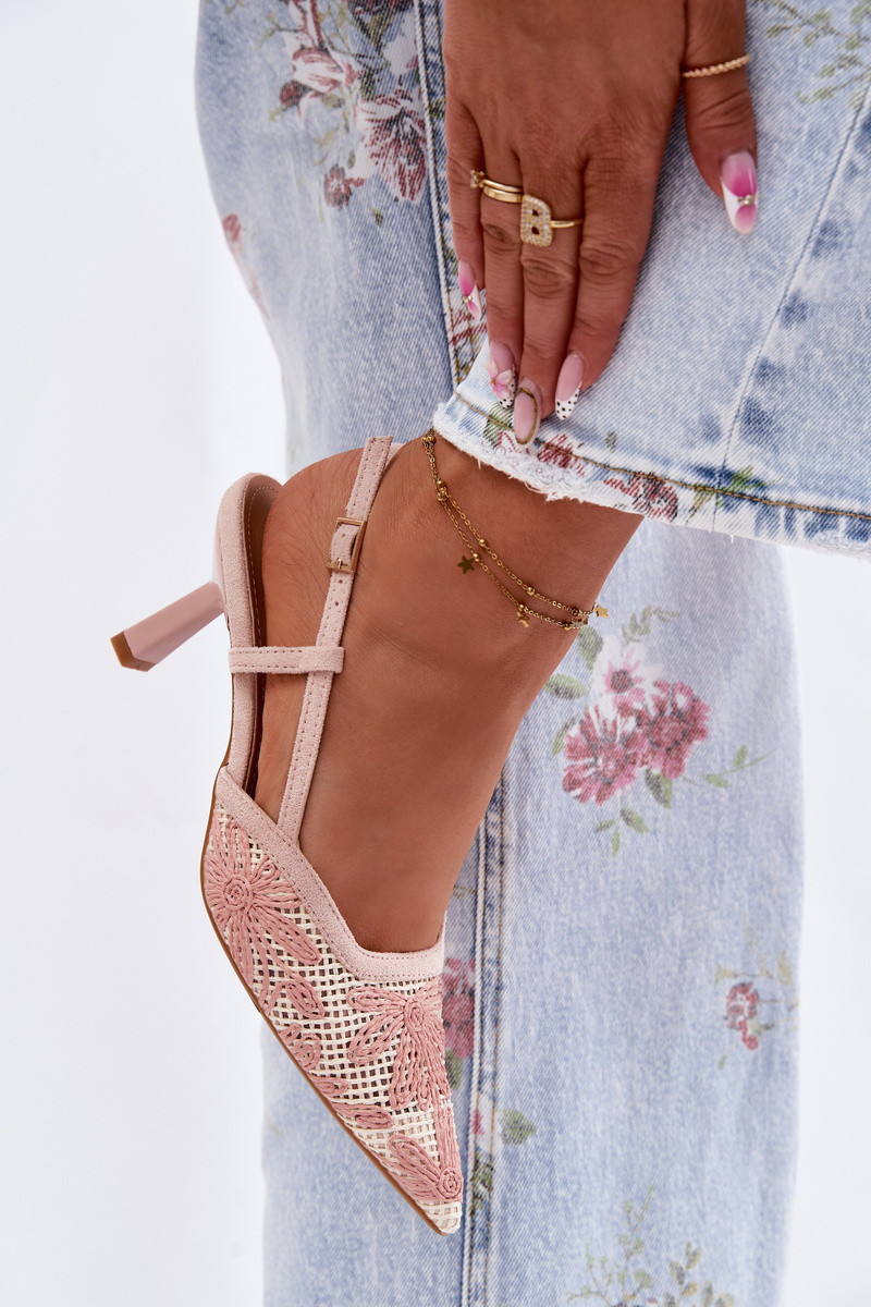 Smilšu krāsas augstpapēžu sandales ar ziediem Kelmira