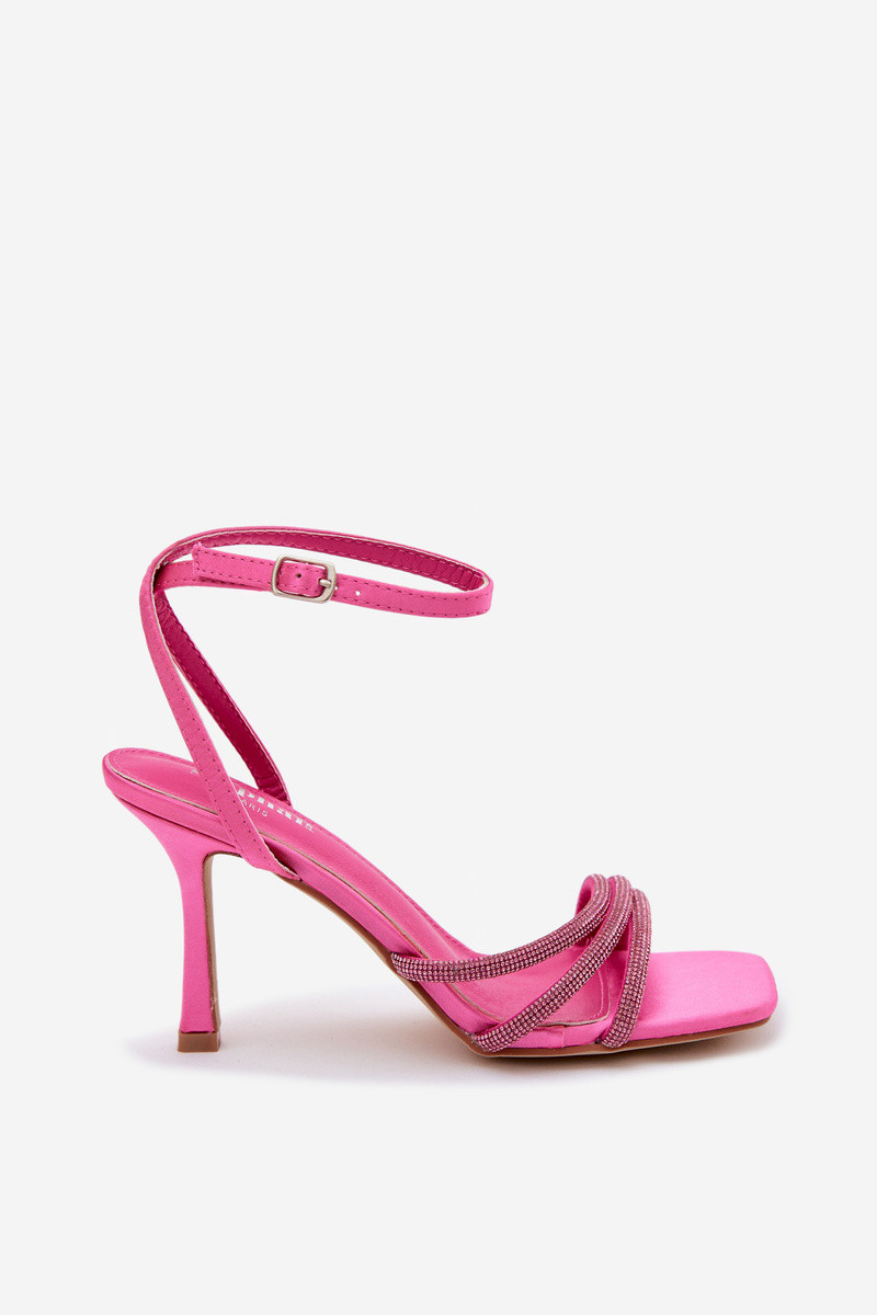 Rozā krāsas sieviešu sandales ar plāniem papēžiem un mirdzošām kniedēm Chiara